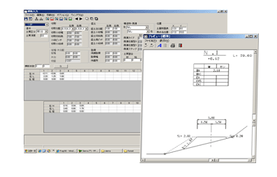 野帳データ(既設道)を入力し,後は各パラメータをセットするだけで,平面,縦断及び出来高横断図面を簡単に作成することができます.