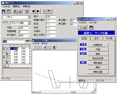 WindowsXp,Vista上で動作する治山用流路工CADシステムです.